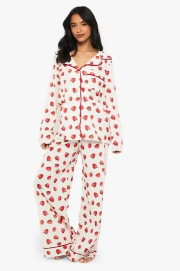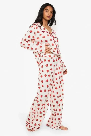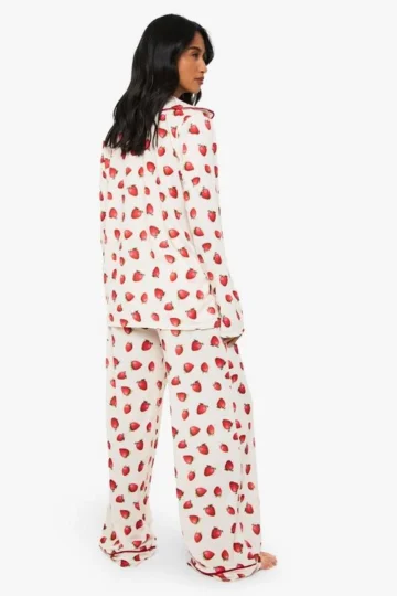 BOOHOO Petite Strawberry Printed Shirt & Trouser Pyjama Set