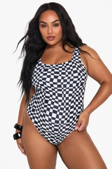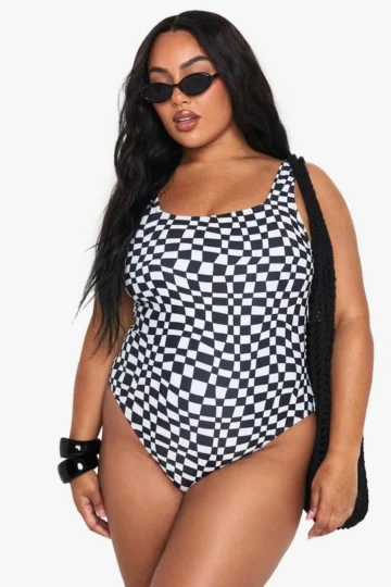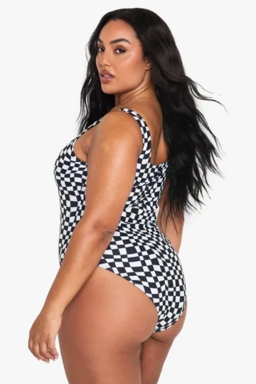 BOOHOO Plus Checkerboard Square Neck Swimsuit
