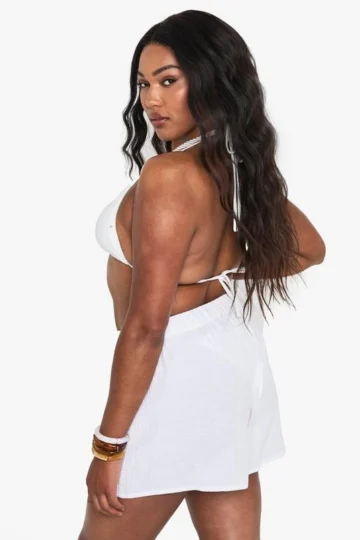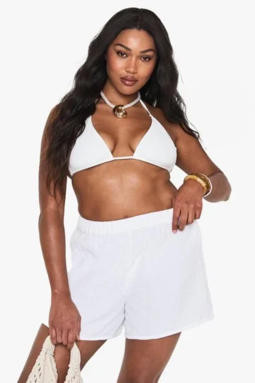 BOOHOO Plus Cheesecloth Elasticated Waist Shorts