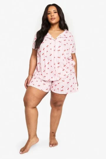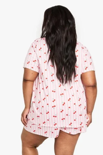 BOOHOO PLUS CHERRY PRINT SHIRT AND SHORT SET