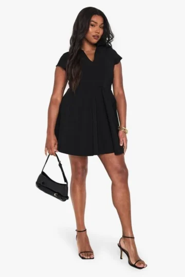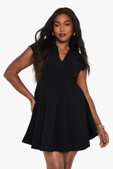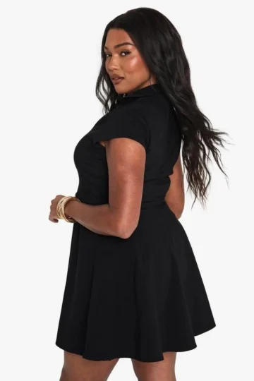 BOOHOO Plus Collared Tailored Mini Skater Dress