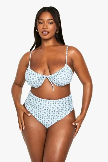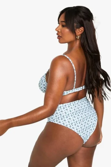 BOOHOO Plus Gingham Floral Print Underwired Bikini Top