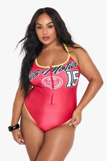 BOOHOO PLUS GRAPHIC STRAPPY SWIMSUIT