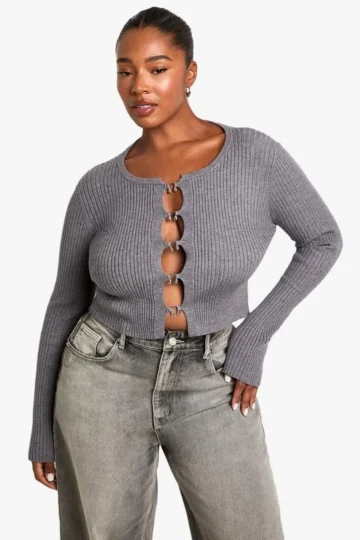 BOOHOO Plus Hook Detail Rib Cardigan