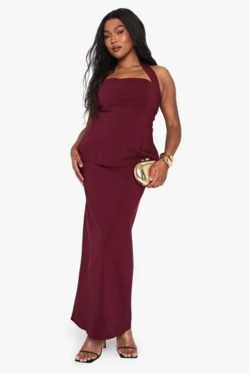 BOOHOO Plus Halterneck Column Tailored Maxi Dress