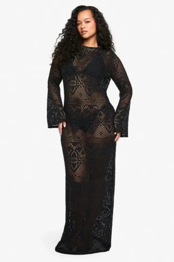BOOHOO Plus Flared Sleeve Maxi Beach Dress