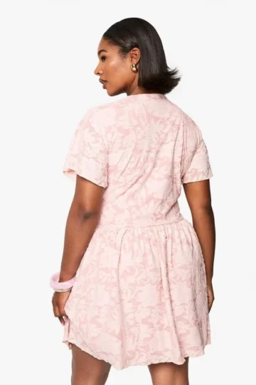 BOOHOO PLUS FLORAL BURNOUT MINI SKATER DRESS