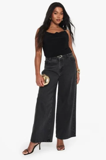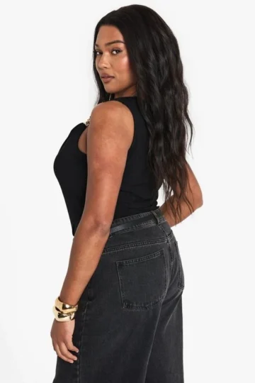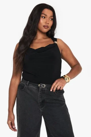 BOOHOO PLUS GOLD TRIM COWL FRONT BODYSUIT