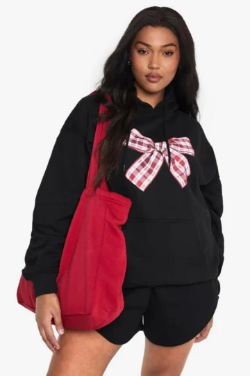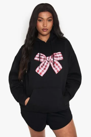 BOOHOO PLUS GINGHAM BOW OVERSIZED HOODIE