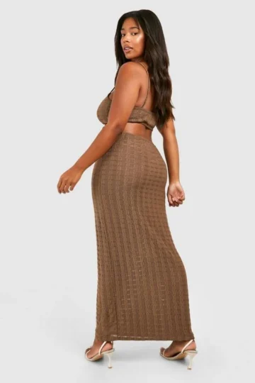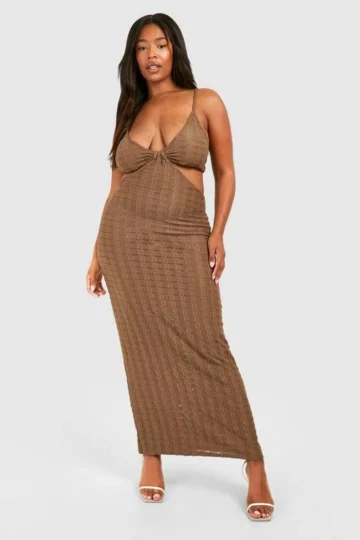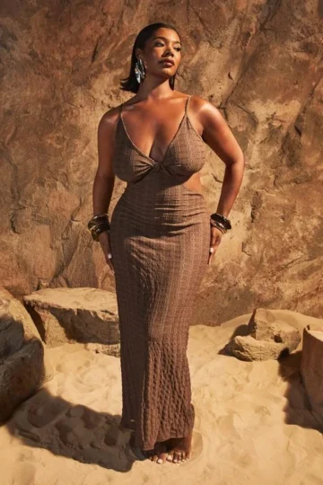 BOOHOO Plus Knitted Trim Detail Beach Maxi Dress