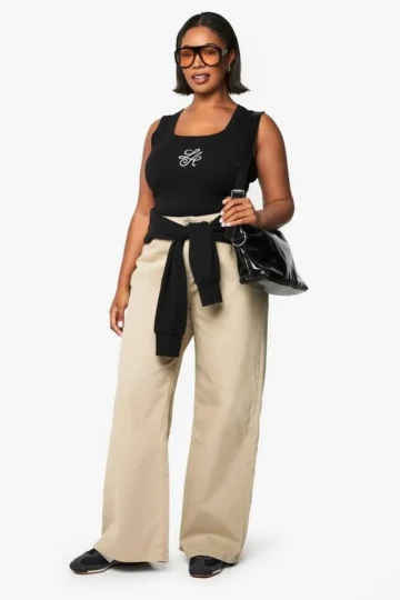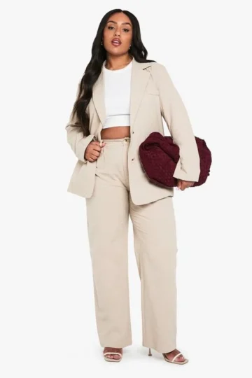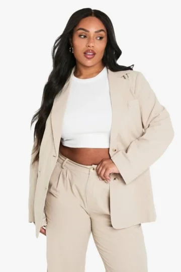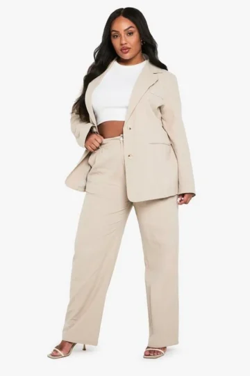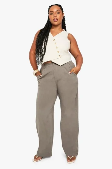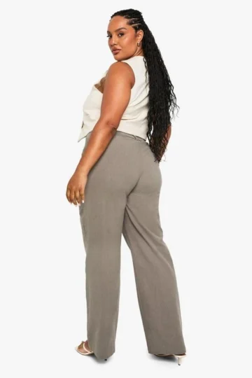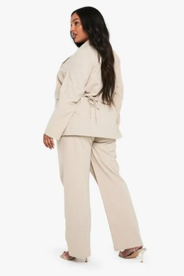 BOOHOO Plus Linen Elasticated Back Tailored Trouser