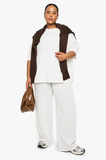BOOHOO PLUS KNITTED WIDE LEG TROUSERS