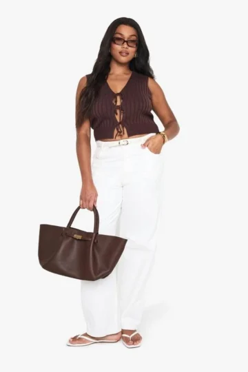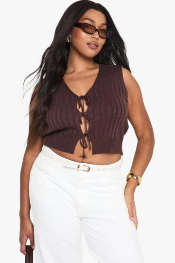BOOHOO Plus Knitted Tie Detail Waistcoat