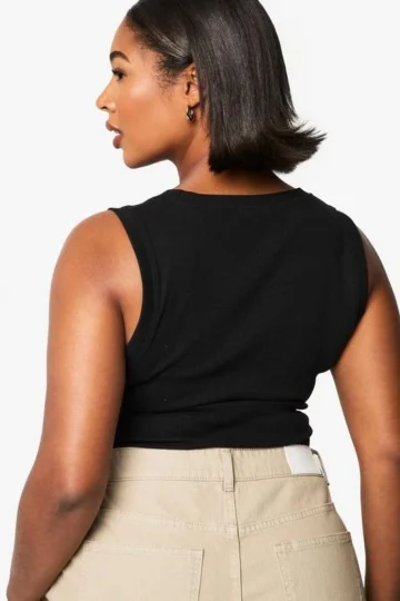 BOOHOO PLUS LA SLOGAN EMBRODIERED RIB TANK VEST TOP