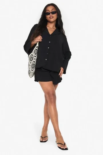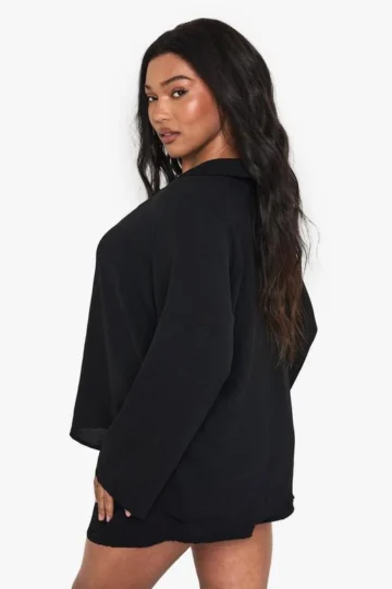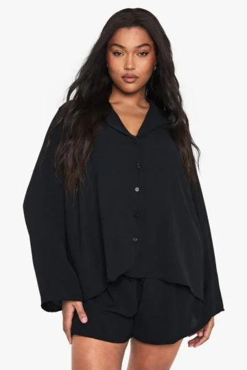 BOOHOO PLUS LONG SLEEVE SHIRT AND SHORT CO ORD