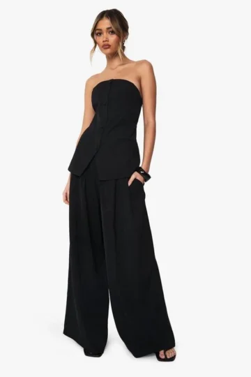 BOOHOO Tailored Occasion Pleated Wide Leg Trousers