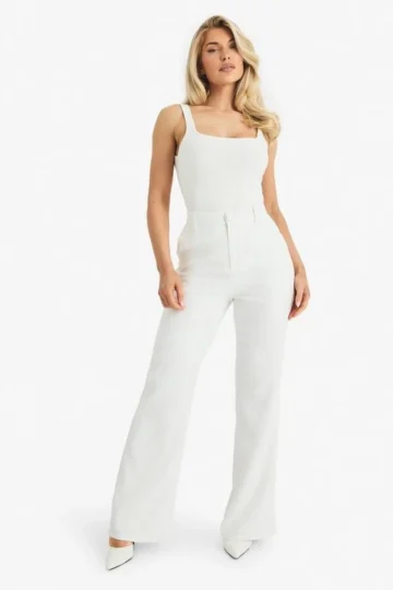 BOOHOO Tailored One Shoulder Wide Leg Jumpsuit