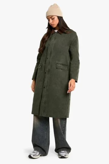 BOOHOO Cord Collar Detail Midaxi Barn Jacket