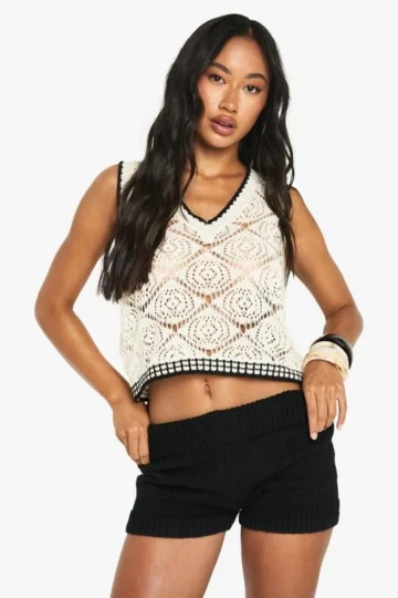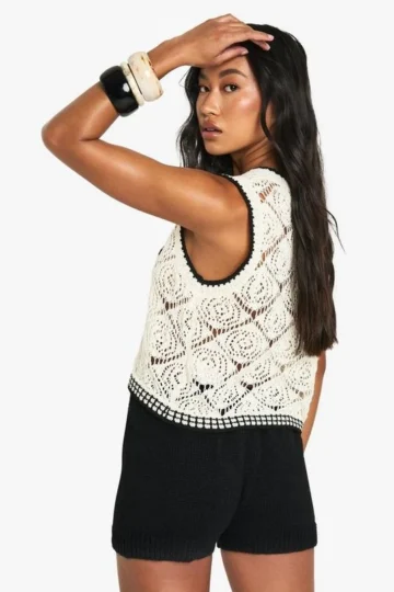 BOOHOO Contrast Trim Crochet Top