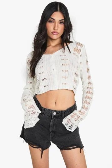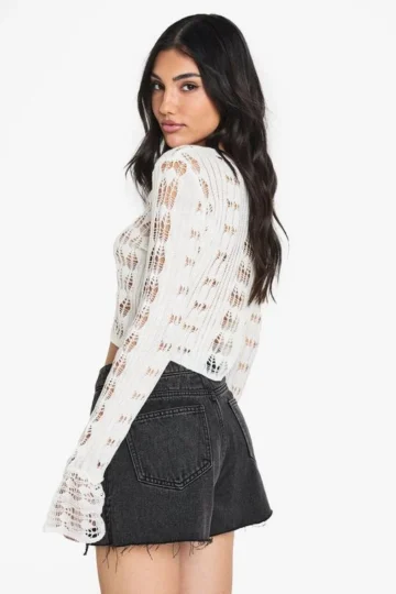 BOOHOO Crochet Frill Sleeve Cardigan