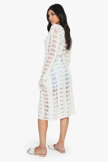 BOOHOO Crochet Frill Sleeve Maxi Cardigan