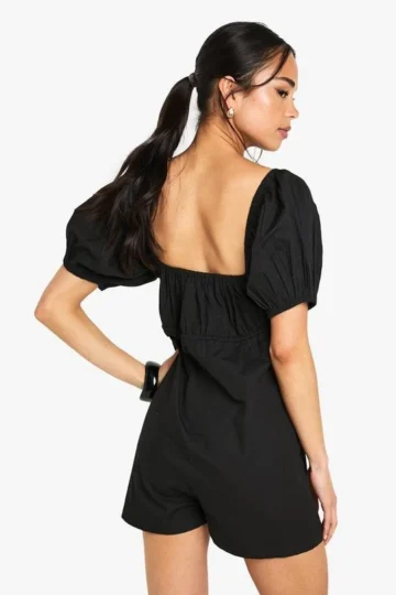 BOOHOO Cotton Poplin Puff Sleeve Playsuit