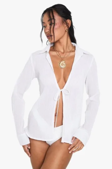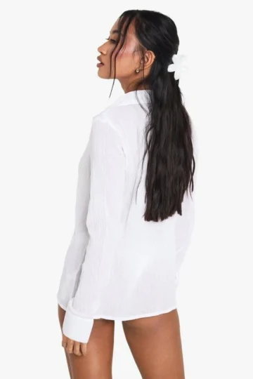 BOOHOO Crinkle Cotton Beaded Beach Shirt