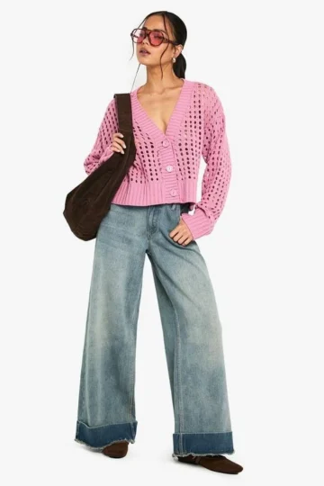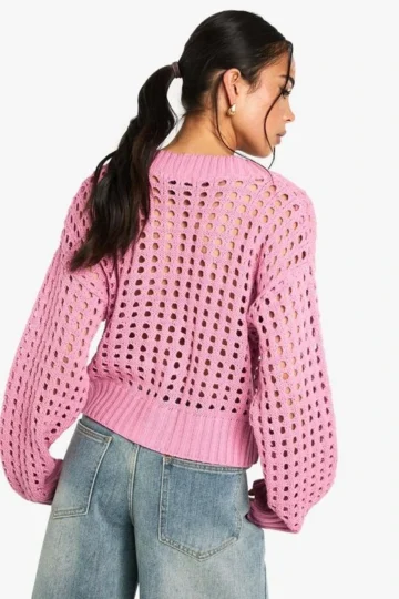 BOOHOO Crochet Knitted Button Down Cardigan