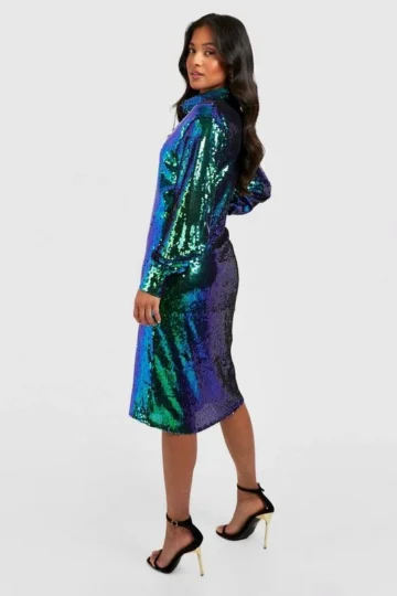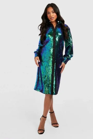 BOOHOO Petite Bright Sequin Midi Shirt Dress