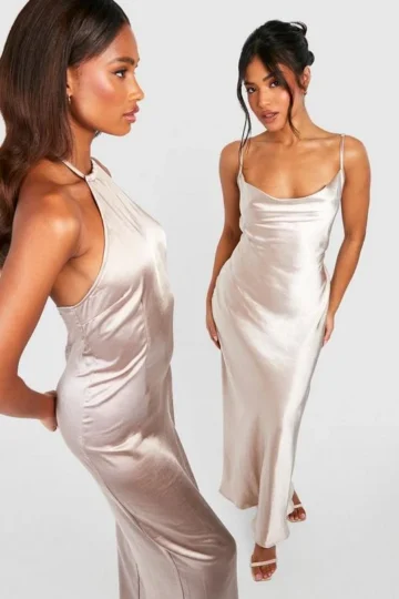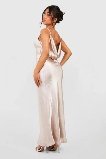BOOHOO Petite Bridesmaid Satin Cowl Neck Maxi Dress