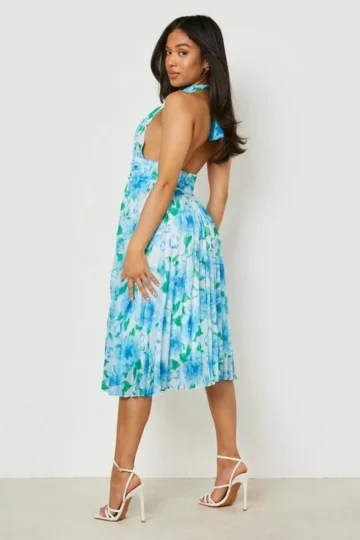 BOOHOO Petite Floral Pleated Chiffon Midi Dress