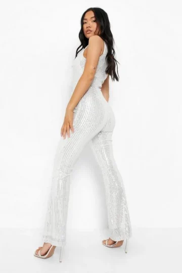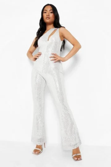 BOOHOO Petite Sequin Cut Out Detail Flare Jumpsuit