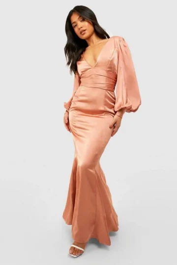 BOOHOO Petite Puff Sleeve Satin Occasion Dress
