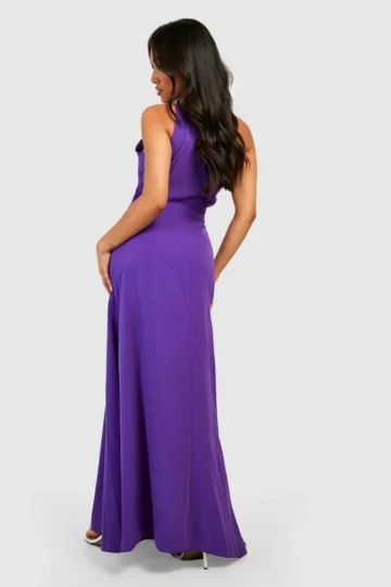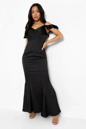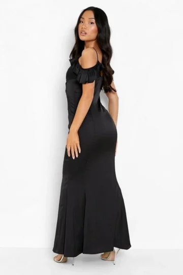 BOOHOO Petite Satin Wrap Cold Shoulder Maxi Dress