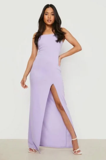 BOOHOO Petite Recycled Square Neck Split Maxi Dress