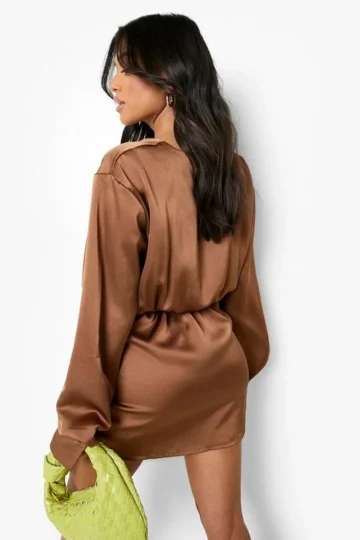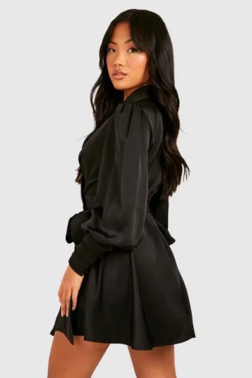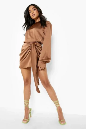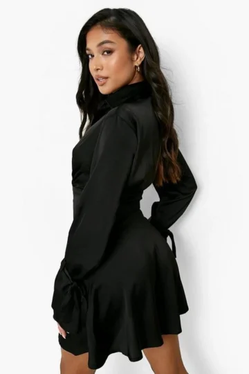 BOOHOO Petite Satin Tie Wrap Mini Dress