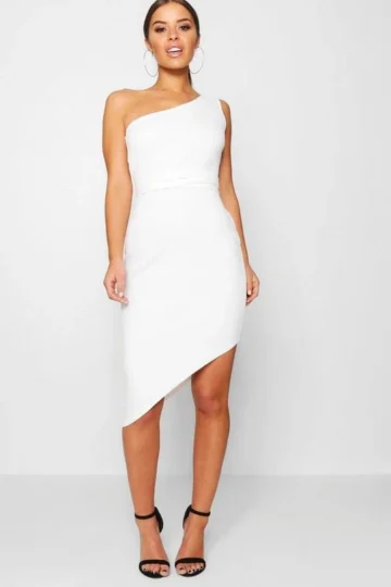 BOOHOO Petite Recycled Asymmetric Bodycon Dress