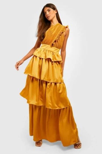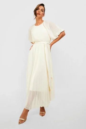 BOOHOO Pleated Ruffle Detail Maxi Dress