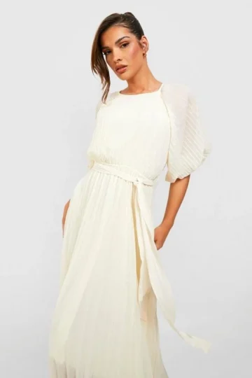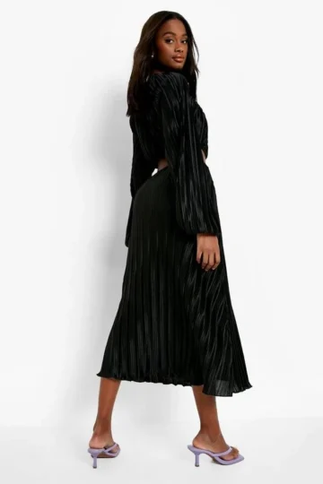 BOOHOO Pleated Puff Sleeve Midi Dress