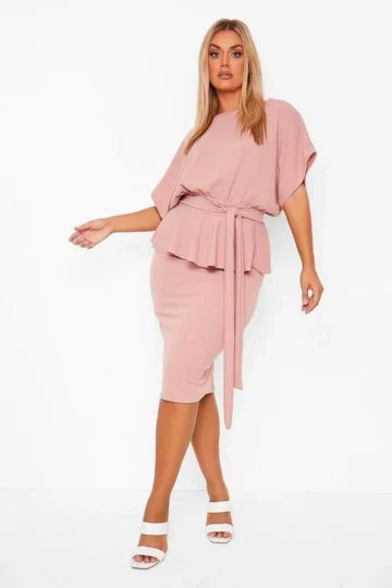 BOOHOO Plus Boat Neck Peplum Dress