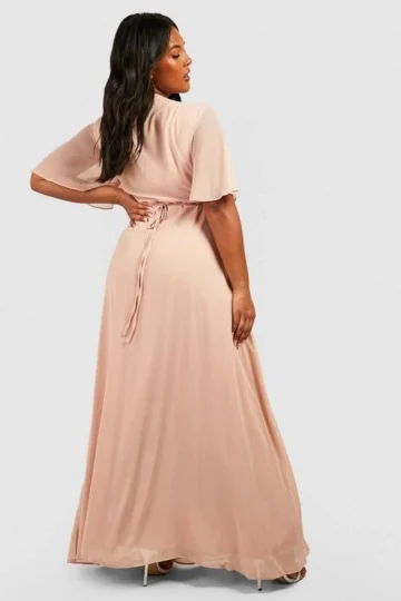 BOOHOO Plus Angel Sleeve Wrap Bridesmaid Dress