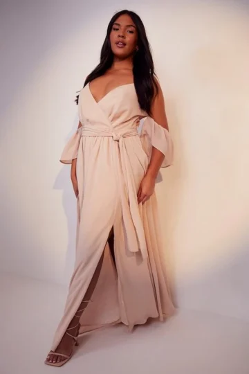 BOOHOO Plus Occasion Chiffon Cold Shoulder Maxi Dress