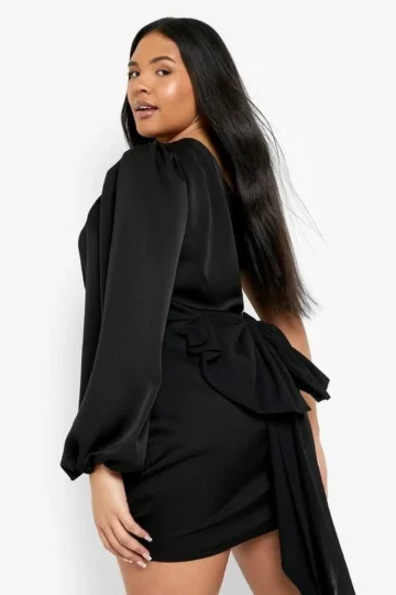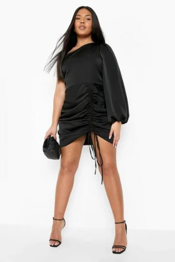BOOHOO Plus Occasion Satin One Shoulder Bow Back Dress