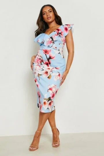 BOOHOO Plus Occasion Ruffle Floral Midi Dress
