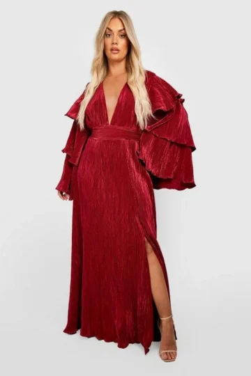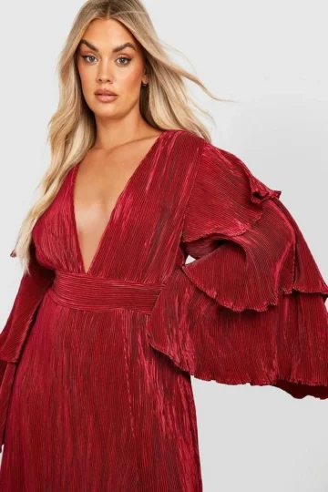 BOOHOO Plus Layered Ruffle Sleeve Maxi Dress