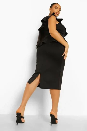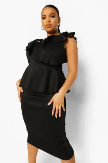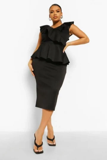 BOOHOO Plus Occasion Ruffle Peplum Midi Dress