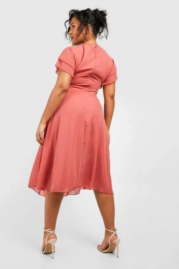 BOOHOO Plus Occasion Angel Sleeve Chiffon Midi Dress