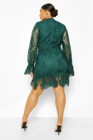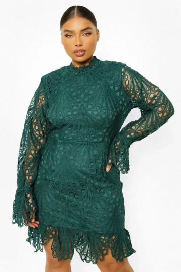 BOOHOO Plus Lace High Neck Ruffle Mini Dress