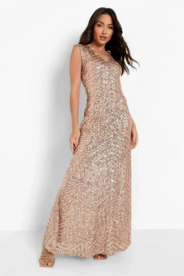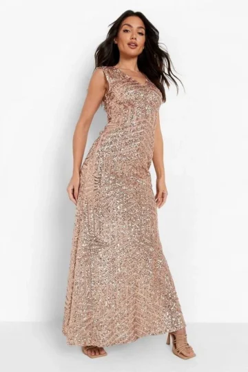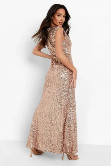 BOOHOO Sequin Sleeveless Maxi Bridesmaid Dress