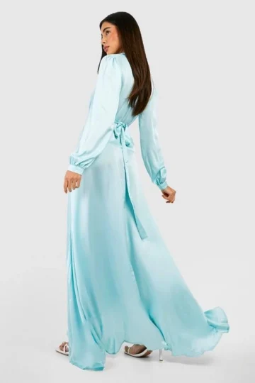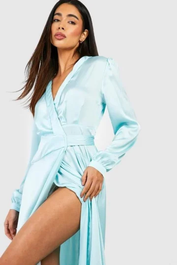 BOOHOO Satin Wrap Belted Maxi Dress